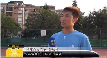 【記者黃羿蓁、彭語箴/台北報導】賣力地揮著一拍接著一拍,這是來自台灣首府大學的網球好手郭紀彬,從小就學習網球的他,一路走來,在教練細心的指導下,就算再辛苦再累,也從來不放棄。對...