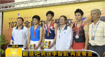 【記者 王貫丞 李宜庭 林敬庭 余宜庭 /宜蘭報導】 15日下午,競技體操全能男子競賽國中組前三名羅東國中就包辦前兩名,分別為蘇秉權及王...